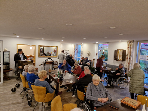 Am Donnerstag, den 27.11.2025, hatten die Bewohner des AWO Seniorenzentrums Recklinghausen die Gelegenheit sich besser auf die schöne Adventszeit einzustimmen. Beim diesjährigen „Winterzauber“ konnten die Bewohner Glühweinduft schnuppern, selbstgemachte Werke und Kreationen bewundern, eine leckere Bratwurst und Pizza essen und sich mit dem Nikolaus und seinem Engelchen ablichten lassen. Die ausgefallenen und interessanten Weihnachtsmarktstände mit Holzdekorationen, Grußkarten und Holzspielzeugen erfüllten alle Besucher des Weihnachtszaubers mit Freude und Lebenslust. Begleitet wurde das Spektakel mit weihnachtlicher Musik eines Drehorgelspielers und dem Duft frisch gebackener Waffeln.