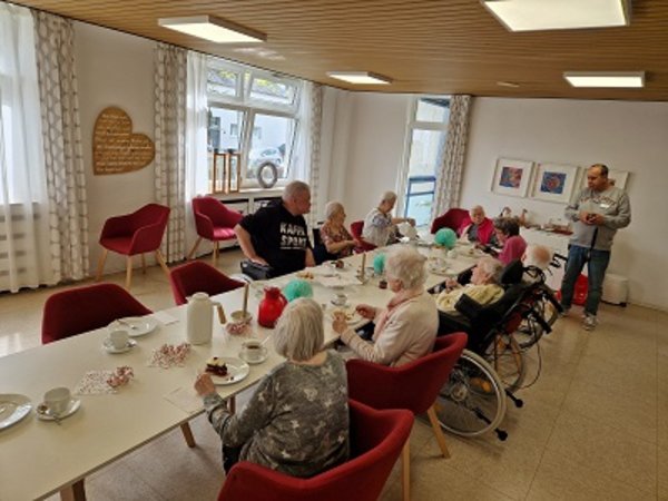 Bei dem Geburtstagscafé werden die Geburtstagskinder des letzten Quartals (Januar, Februar, März) geehrt! Bei einer gemütlichen Tasse Kaffee und leckerer Torte wird der besondere Tag noch einmal gebührend gefeiert. Alle Bewohner*innen waren herzlich eingeladen, zusammen zu feiern und zu lachen. Es ist eine schöne Gelegenheit, sich zu treffen, zu plaudern und einen fröhlichen Nachmittag zu verbringen.