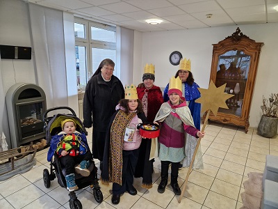 Unsere Bewohnerinnen und Bewohner freuten sich sehr über die Segenstexte und bedankten sich bei den „Heiligen Drei Königen“ Lino, Louis, Lina, Marlene und Amelie sowie ihren Begleitern Frau Bremer und Frau Frohwein. Sie sind sehr gesehene Gäste.